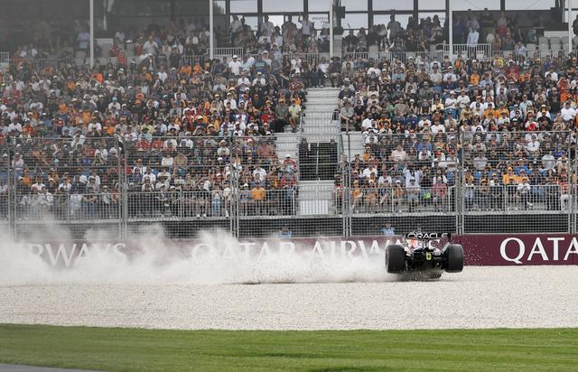 ↑ 红牛车队荷兰车手维斯塔潘在排位赛中失控冲出赛道。 新华社记者 马平 摄